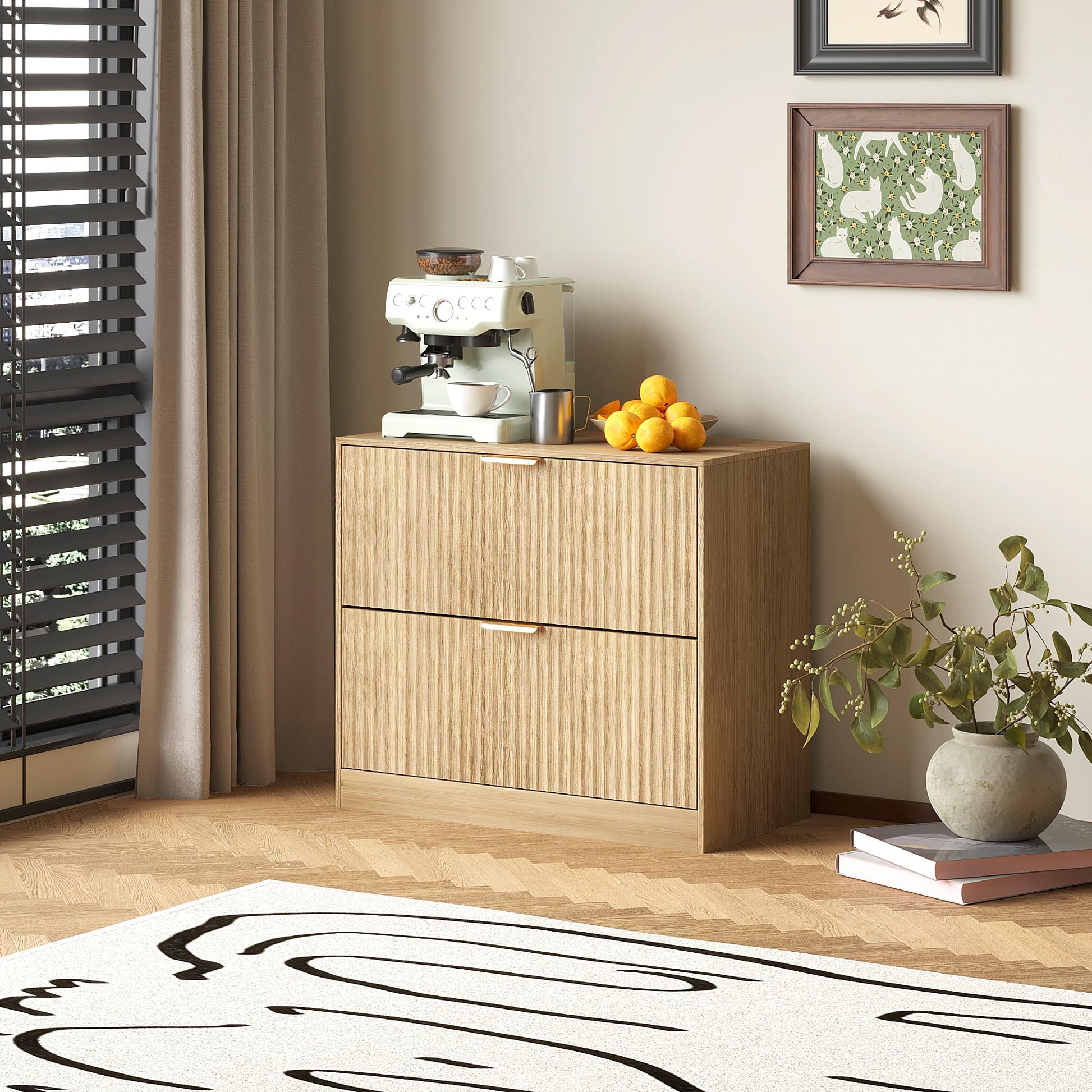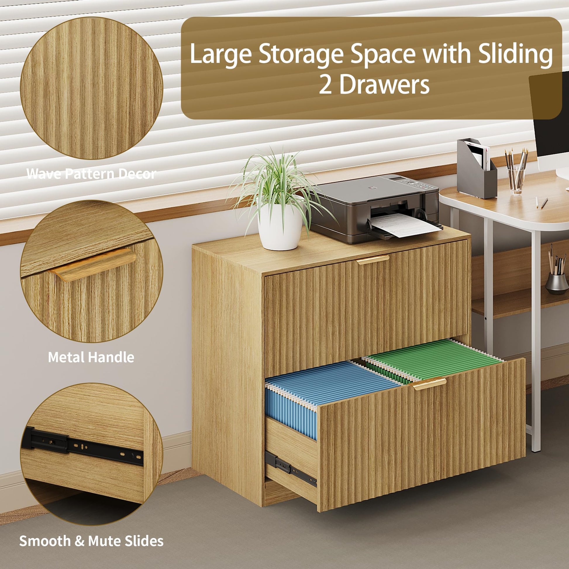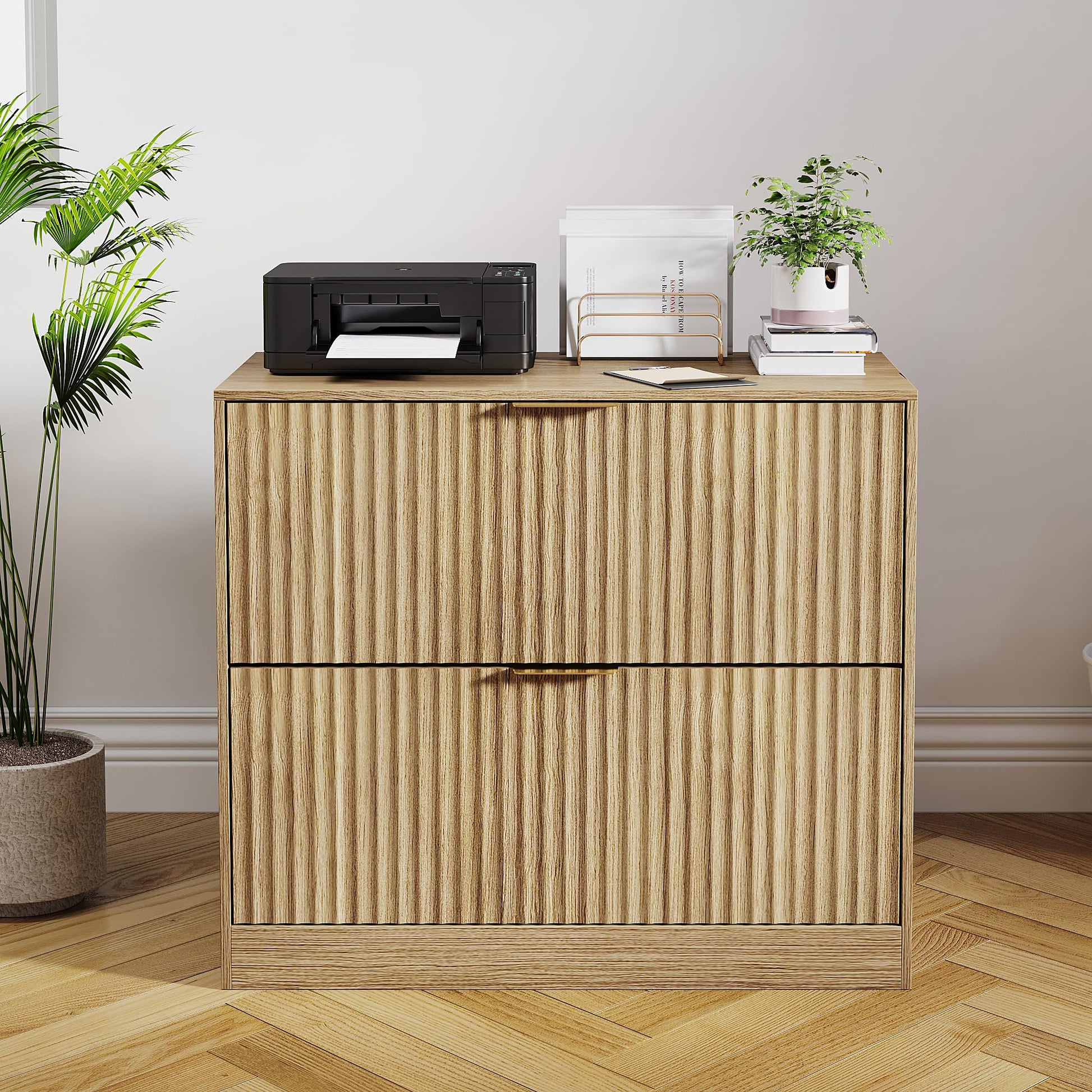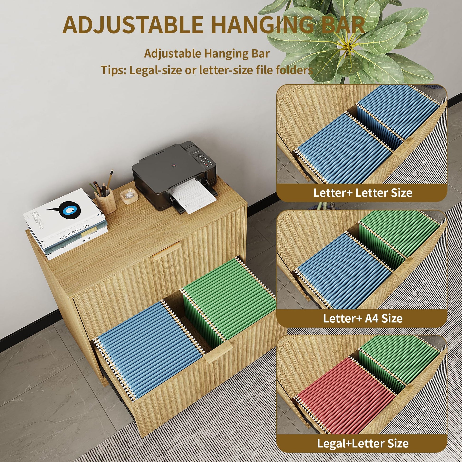 WTWEGMDGE Double Drawer Horizontal File Cabinet,Modern Wood Fluted Home Office File Cabinet Printer Stand with Three-Level Adjustable Hanging Rails for Legal/Letter/A4 Size Documents (Wood)
