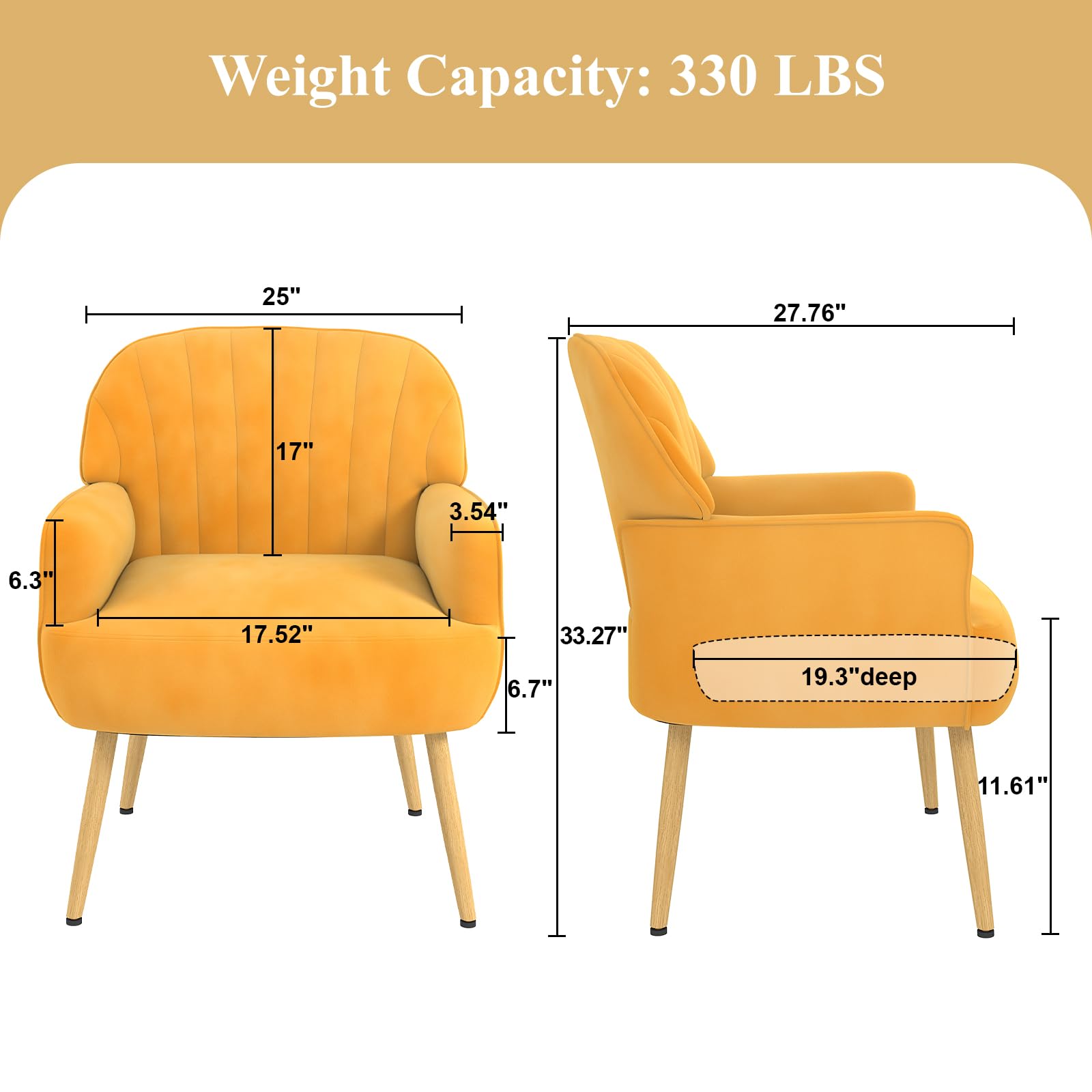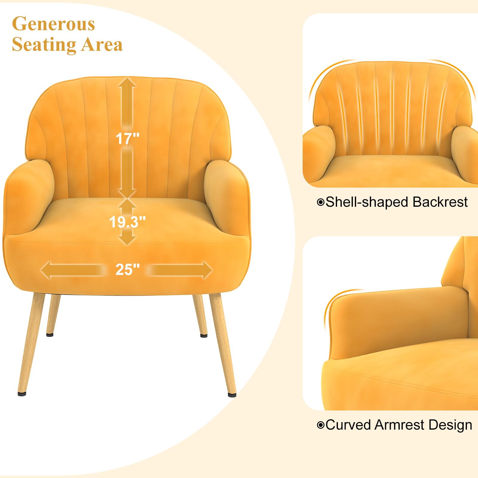 Yellow Velvet Shell-Shaped Accent Chair