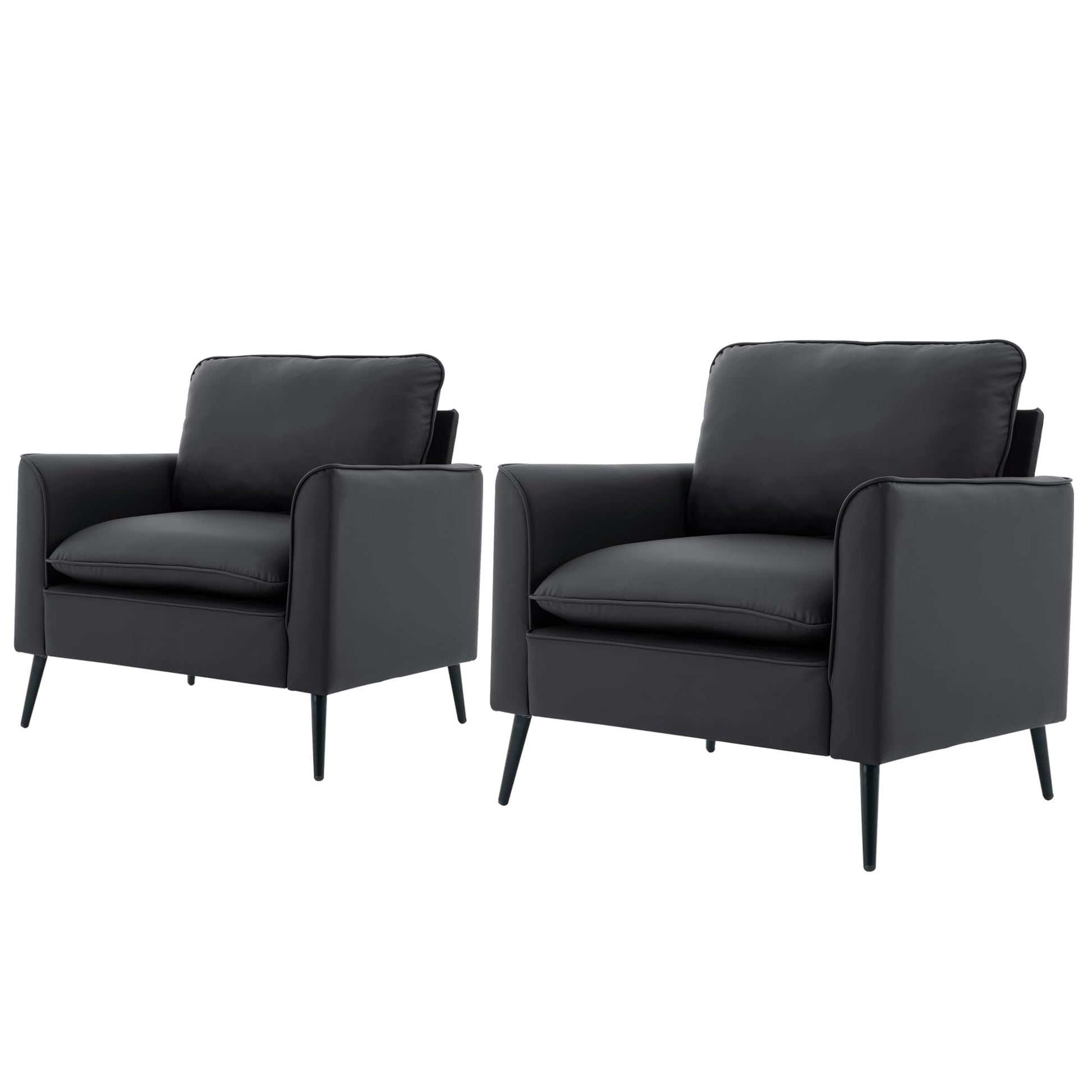 YISHENG Mid-Century Modern Living Room Accent Chairs Set of 2 - Oversized Faux Leather Armchairs with Removable Cushions & Metal Legs, Comfortable Sofas for Office/Lounge/Bedroom/Reception,(Black)