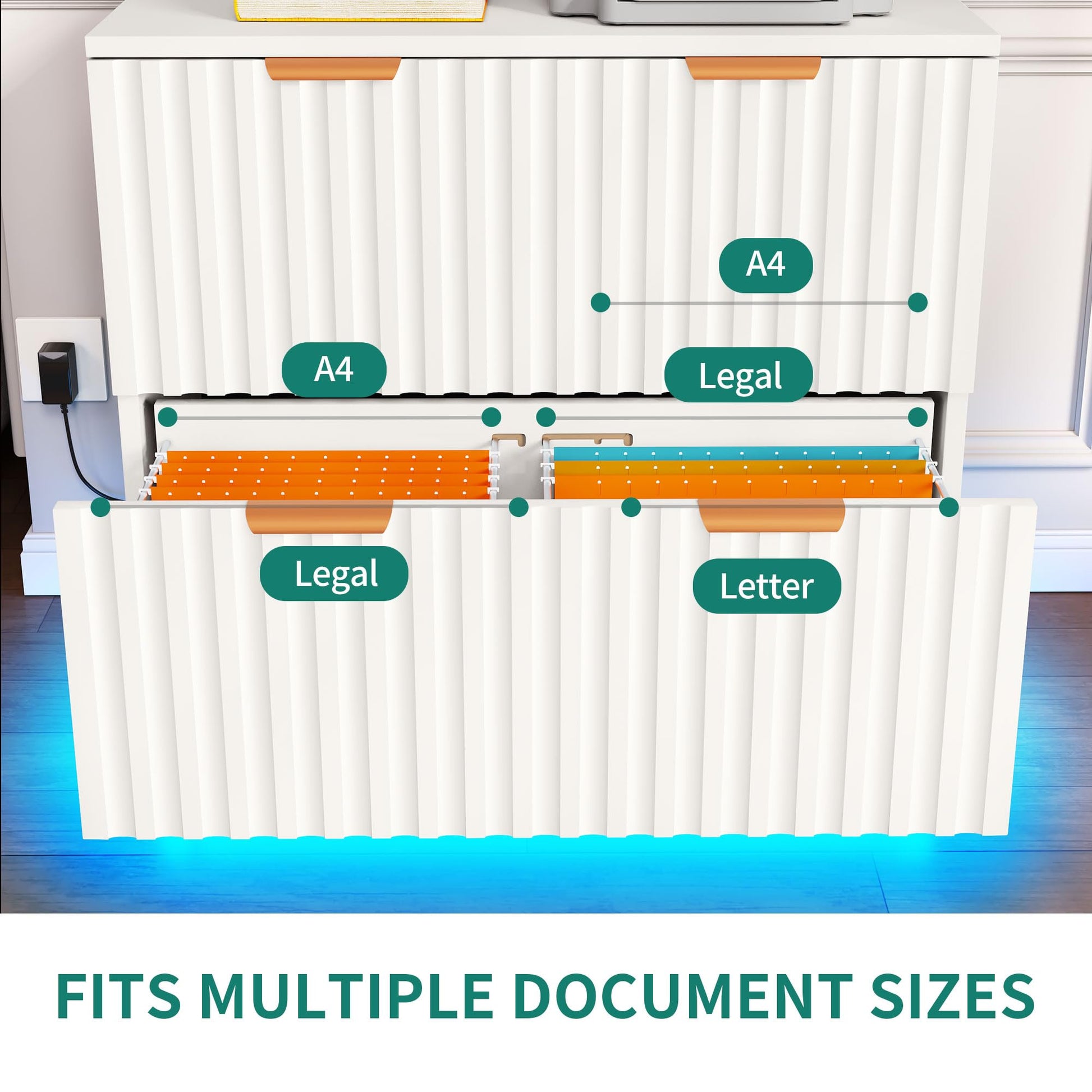 YITAHOME 2 Drawer File Cabinet with Led Light, Modern Filing Cabinet, Large Lateral File Cabinet for Home Office, White