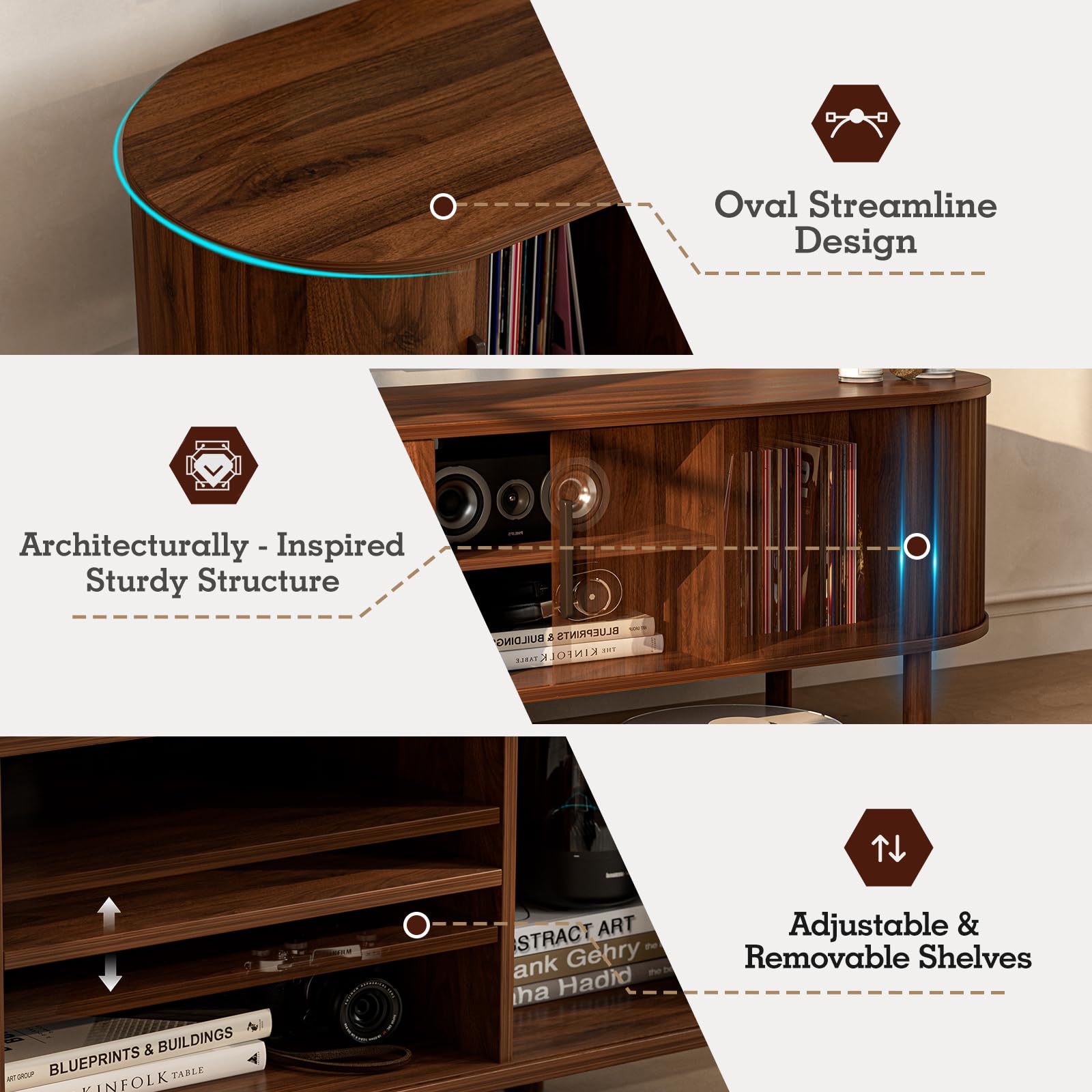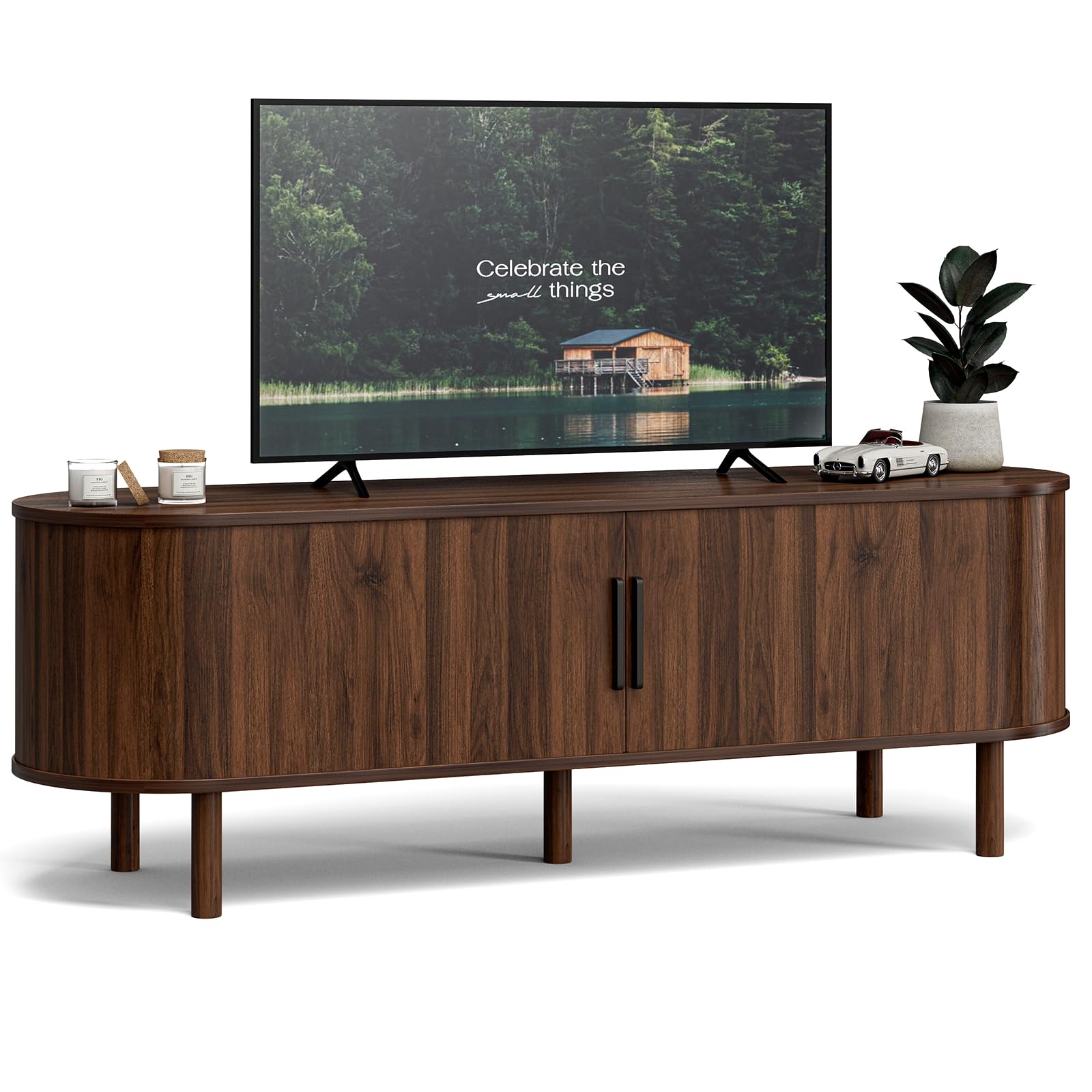 ZttRiee TV Stand for TVs up to 60 Inch, Entertainment Center with Sliding Doors and Adjustable Shelf, Modern TV Console with Storage for Living Room, Bedroom, Walnut