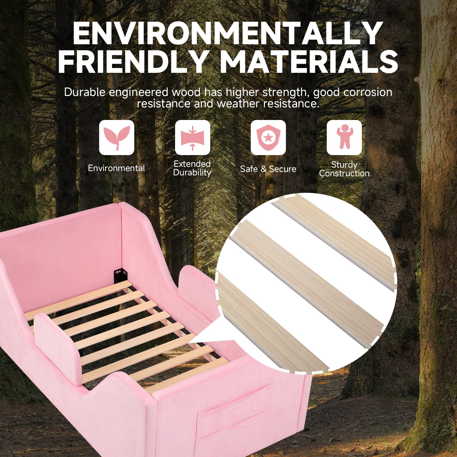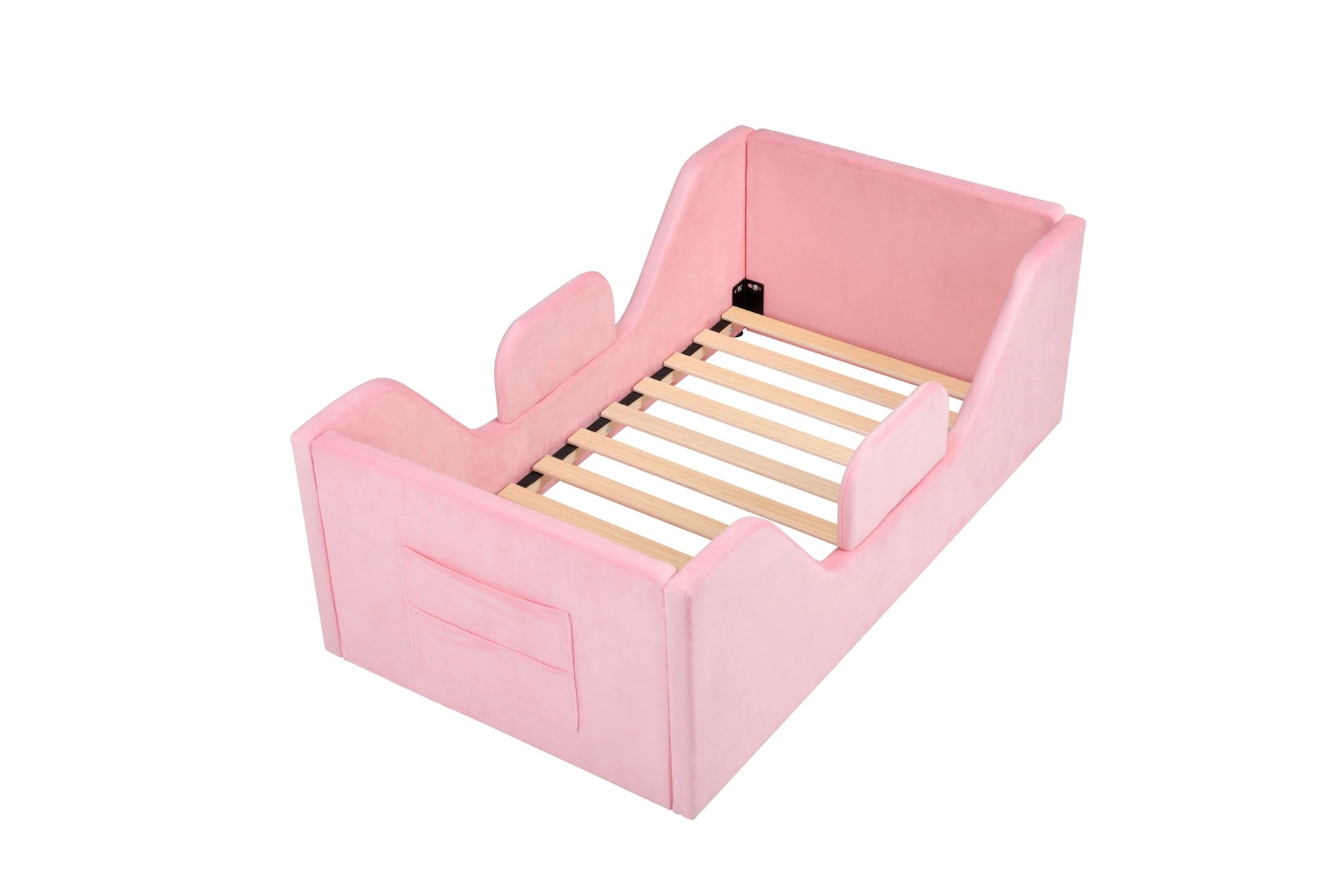 - [Comfortable and Durable Design] This portable toddler bed features high-quality foam and soft velvet fabric for added protection against bumps and falls, ensuring a cozy sleep. The sturdy technology wood slats offer extra support for long-lasting durability.